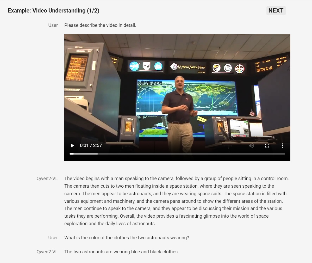 Eine Besonderheit von Qwen2-VL ist die Fähigkeit, Videos mit einer Länge von über 20 Minuten zu analysieren und darauf basierende Fragen zu beantworten, Dialoge zu führen oder Inhalte zu generieren.