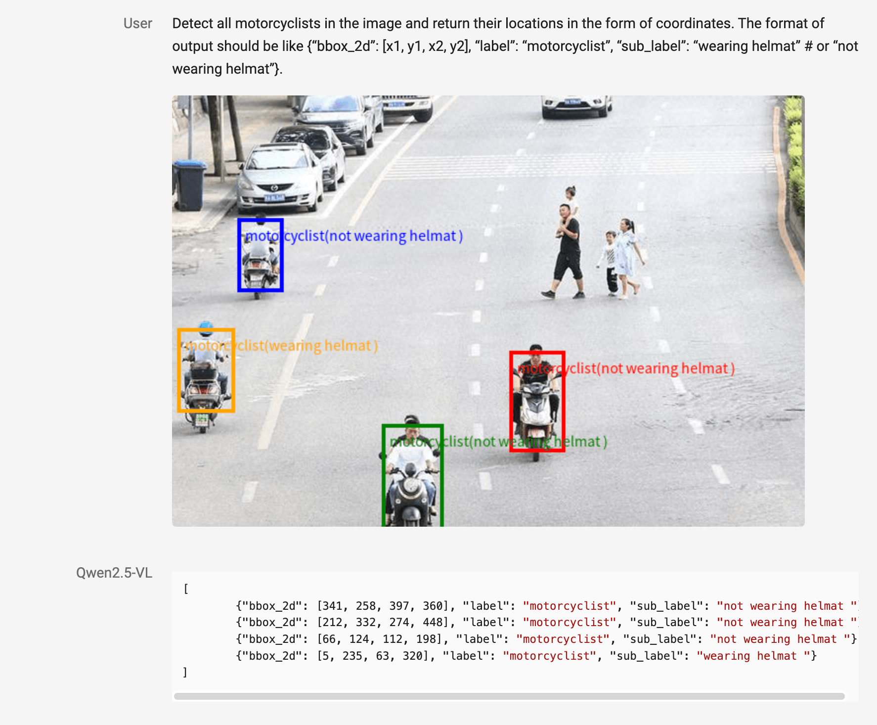 Qwen2.5-VL kann außerdem einzelne Objekte und ihre Teile präzise identifizieren und so etwa erkennen, ob ein Motorradfahrer einen Helm trägt oder nicht. Für Dokumente wie Rechnungen und Formularen können die extrahierten Informationen in einer strukturierten Form wie JSON ausgegeben und so leichter weiterverwendet werden.