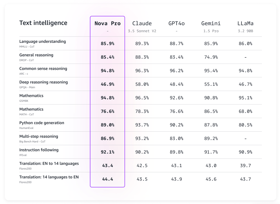 Amazon präsentiert mit der Nova-Familie neue KI-Grundlagenmodelle für Text-, Bild- und Videoanalyse. Laut Benchmarks kann das Spitzenmodell Nova Pro in vielen Bereichen mit der Konkurrenz mithalten, setzt aber wohl keine neuen Maßstäbe.