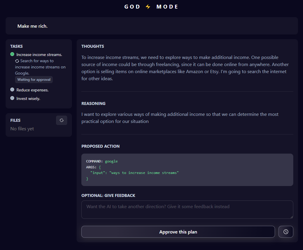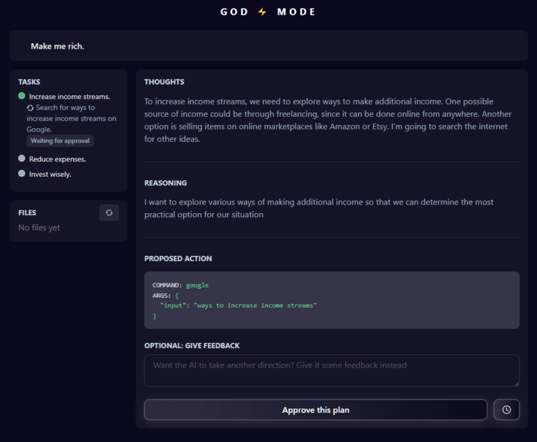 Garrett Scott hat Auto-GPT in kurzer Zeit in ein kommerzielles Produkt verwandelt, das jedoch noch nicht ohne Warteschlange zugänglich ist. Die "Do Anything Machine" ist eine To-Do-Liste, die jedes Mal, wenn eine neue Aufgabe hinzugefügt wird, einen weiteren GPT-4-Agenten startet, der sich der Aufgabe annimmt.