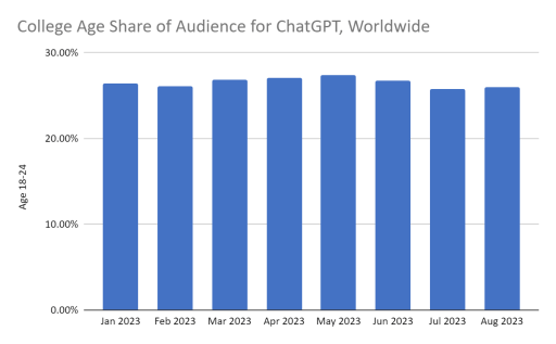 Die Statistik zeigt, dass speziell die Altersgruppe der 18- bis 24-Jährigen in den Sommermonaten weniger auf ChatGPT zugreift. Im Juli gehörten rund 27 Prozent der ChatGPT-Nutzenden dieser Altersgruppe an, im April waren es 30 Prozent.