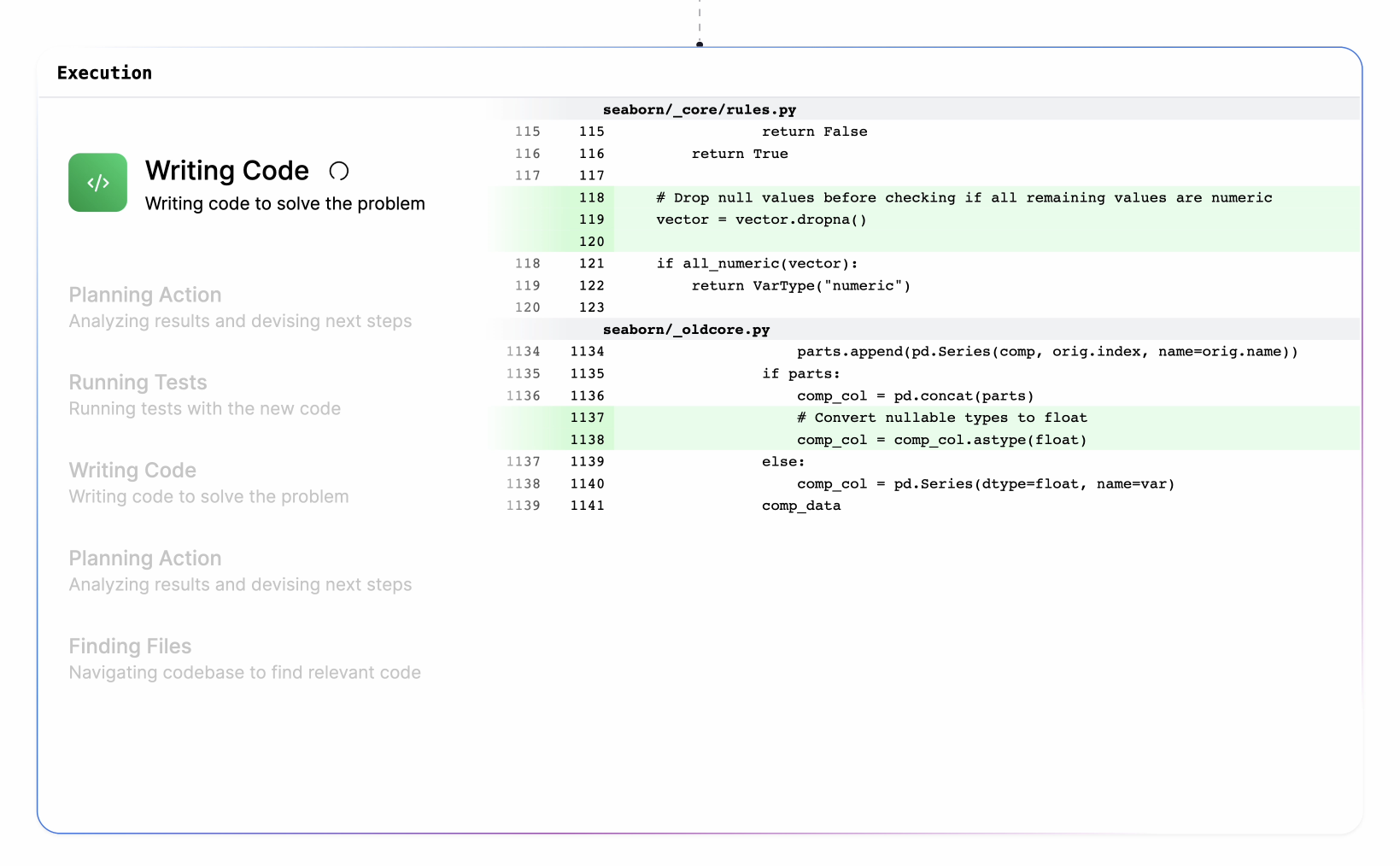 Ein wesentlicher Faktor für Genies Leistungssteigerung sei das selbstverbessernde Training gewesen. Zunächst lernte das Modell hauptsächlich anhand von perfektem, funktionierendem Code, konnte dadurch aber auch schlecht mit eigenen Fehlern umgehen.