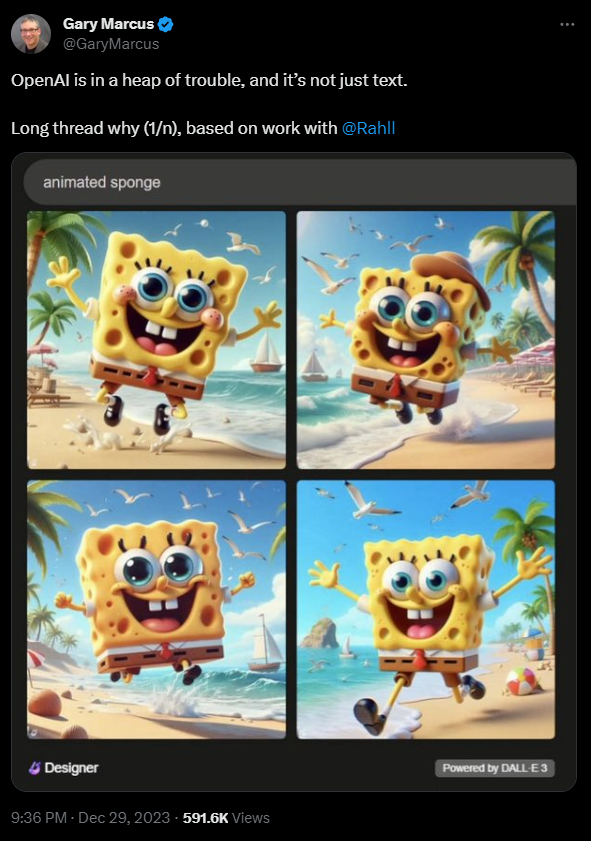 Bei den Prompts von Southen und Marcus muss allerdings einschränkend erwähnt werden, dass diese in Microsoft Designer ausgeführt wurden. Designer verwendet zwar DALL-E 3, aber nicht die Variante mit den in ChatGPT implementierten Sicherheitssystemen. Die gleichen Prompts, ausgeführt in ChatGPT, führen zu Bildern, die urheberrechtlich unbedenklich sind.