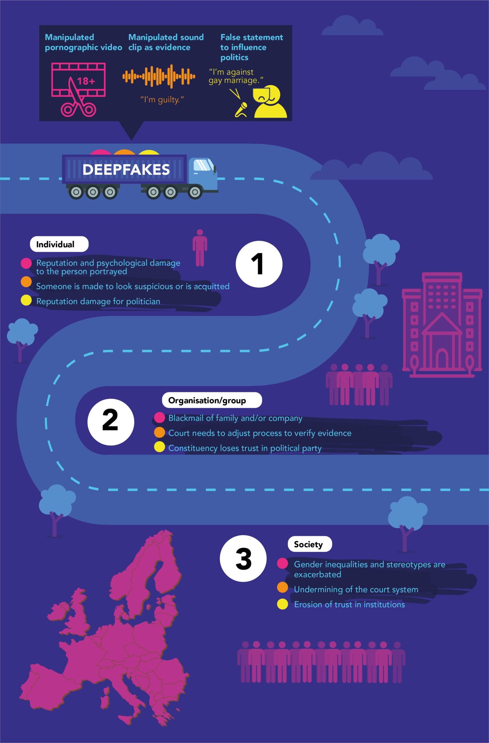 Sie kommen unter anderem zu dem Schluss, dass Deepfake-Techniken zugänglicher, günstiger und besser werden, was sie in Kombination mit der zugespitzten, audiovisuellen Kommunikation in sozialen Medien als Risiko einstufen.