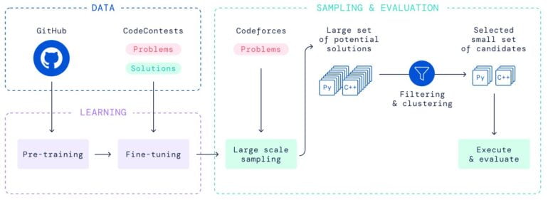 Deepmind trainierte AlphaCode anschließend zusätzlich mit CodeContests, einem von Deepmind zusammengestellten Datensatz von Problemen, Lösungen und Tests von Codeforces-Wettbewerben.