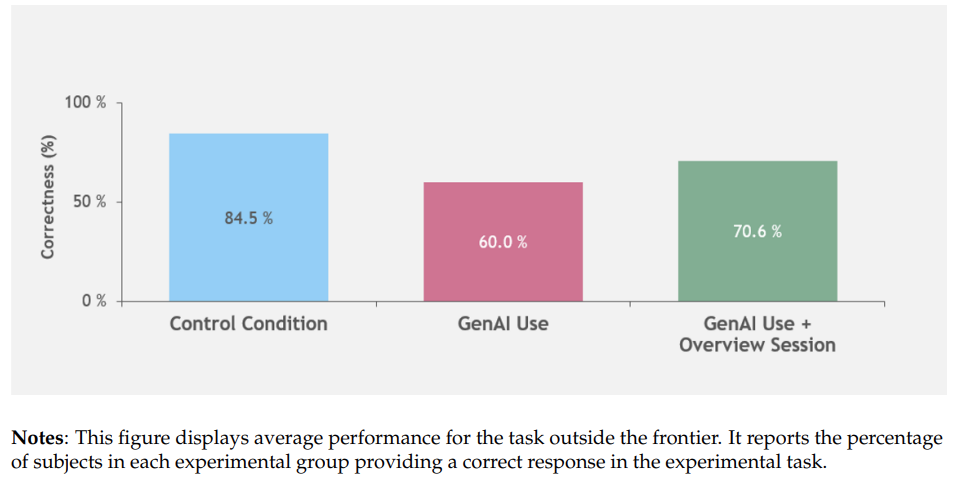 Bei Aufgaben außerhalb dieses Bereichs schnitten die Berater um fast 25 Prozent schlechter ab als Berater ohne KI, weil das Werkzeug unzuverlässige oder falsche Informationen lieferte. Die Forscher warnen daher davor, KI im Blindflug einzusetzen.