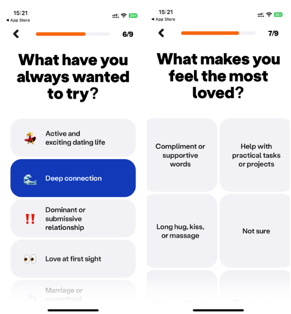 Die Anwendung beginnt mit einer Reihe von Fragen zu Hobbys, Interessen und Vorlieben des anderen Geschlechts. Daraus entwickelt sich das Gespräch in der App.