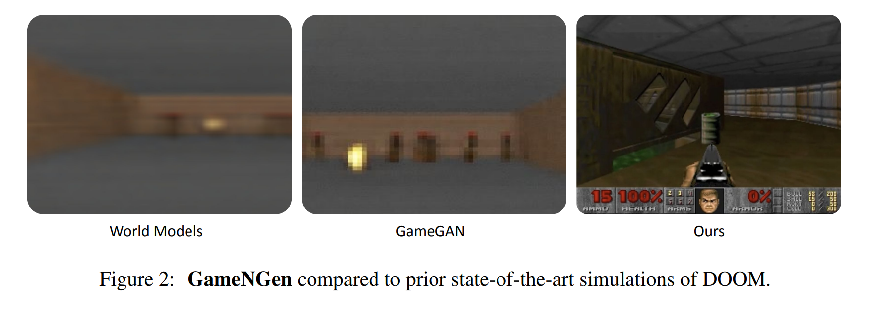GameNGen baut auf früheren Arbeiten zur Simulation interaktiver Videospiele mit neuronalen Modellen auf. Im Vergleich zu bisherigen Ansätzen wie GameGAN oder GAN Theft Auto erzielt es deutliche Verbesserungen hinsichtlich der Komplexität der simulierten Spiele, der Simulationsgeschwindigkeit, der Stabilität über längere Zeiträume und der visuellen Qualität.