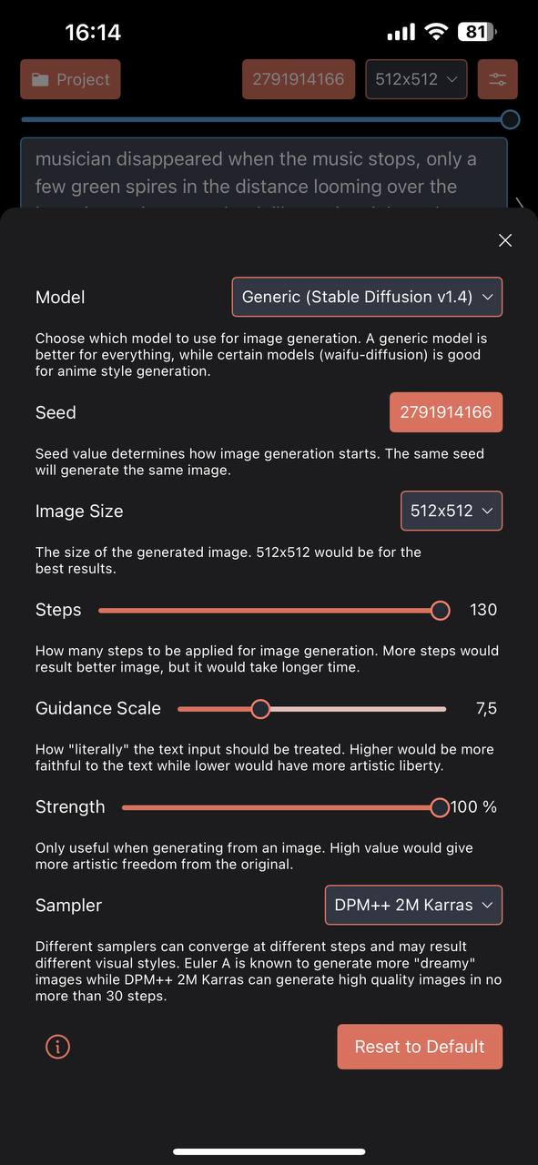 Abgesehen vom gewünschten Modell können Nutzer:innen weitere Einstellungen bei Auflösung (bis 512 x 768 Pixel), Anzahl der Schritte (10 bis 130), Guidance Scale, Strength, Seed und Sampler (DDIM, PLMS, Euler Ancestral, DPM++ 2M Karras) treffen. Besonders praktisch ist die Versionsübersicht, in der jede Änderung detailliert eingesehen werden kann.
