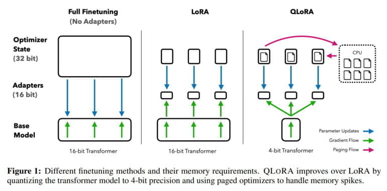QLoRA ermöglicht Finetuning von 65 Milliarden Parameter LLM auf einer GPU