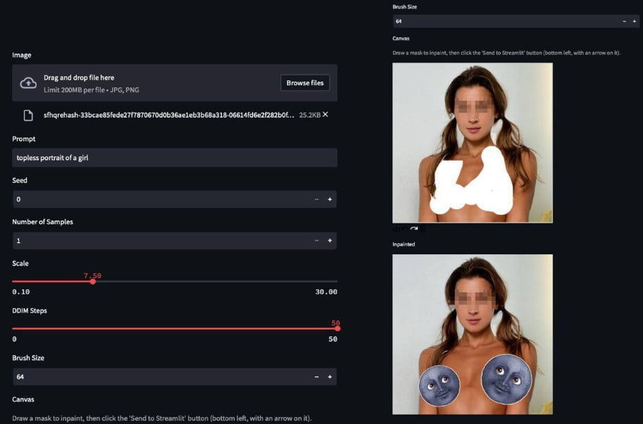 Denis Shiryaev, CEO des KI-Werkzeugkastens neural.love und als KI-Künstler bekannt für seine modernisierten Retro-Videos, wittert bei den Möglichkeiten von Stable Diffusion gar einen neuen "DeepNude-Skandal", sobald die Öffentlichkeit herausfinde, wie leicht es sei, ein Foto mit Bekleidung in ein Nacktfoto umzuwandeln.