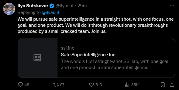 "SSI ist unsere Mission, unser Name und unsere gesamte Produkt-Roadmap, denn das ist unser einziger Fokus", heißt es in der Ankündigung. "Unser Team, unsere Investoren und unser Geschäftsmodell sind alle auf SSI ausgerichtet."