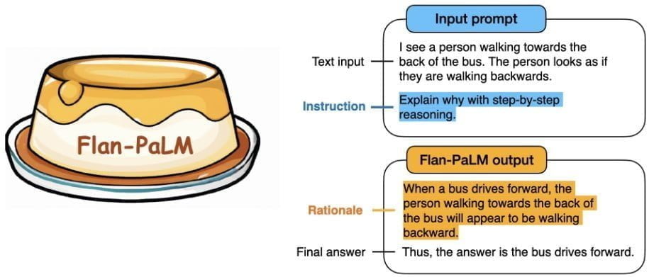 Mit Chain-of-thought-Prompts wird die KI aufgefordert, Sprachaufgaben Schritt für Schritt zu lösen und dabei jeden Schritt zu dokumentieren. Das Training mit nur neun CoT-Datensätzen sorgte für eine signifikante Verbesserung bei dieser Fähigkeit im Vergleich zu früheren FLAN-Modellen.