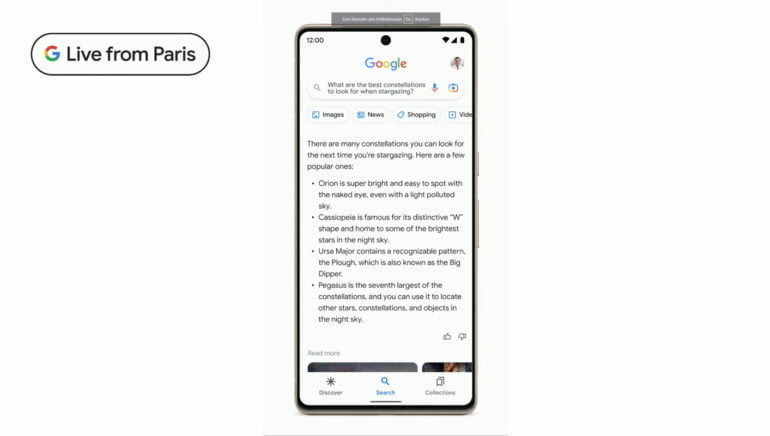 In Paris zeigt Google den Bard-Chatbot und große Sprachmodelle für die Google Suche. Weitere generative KI-Modelle etwa für Bilder sollen folgen.