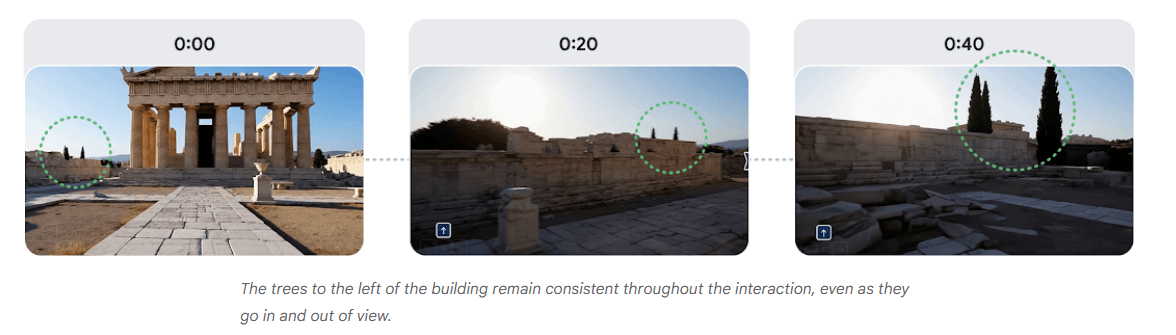 Im Unterschied zu klassischen Videomodellen erzeugt Genie 3 jede Bildsequenz autoregressiv auf Basis der vorherigen Frames. Das Modell speichert Umgebungsdetails bis zu einer Minute zurück, was die visuelle Kohärenz über längere Zeiträume ermöglicht.