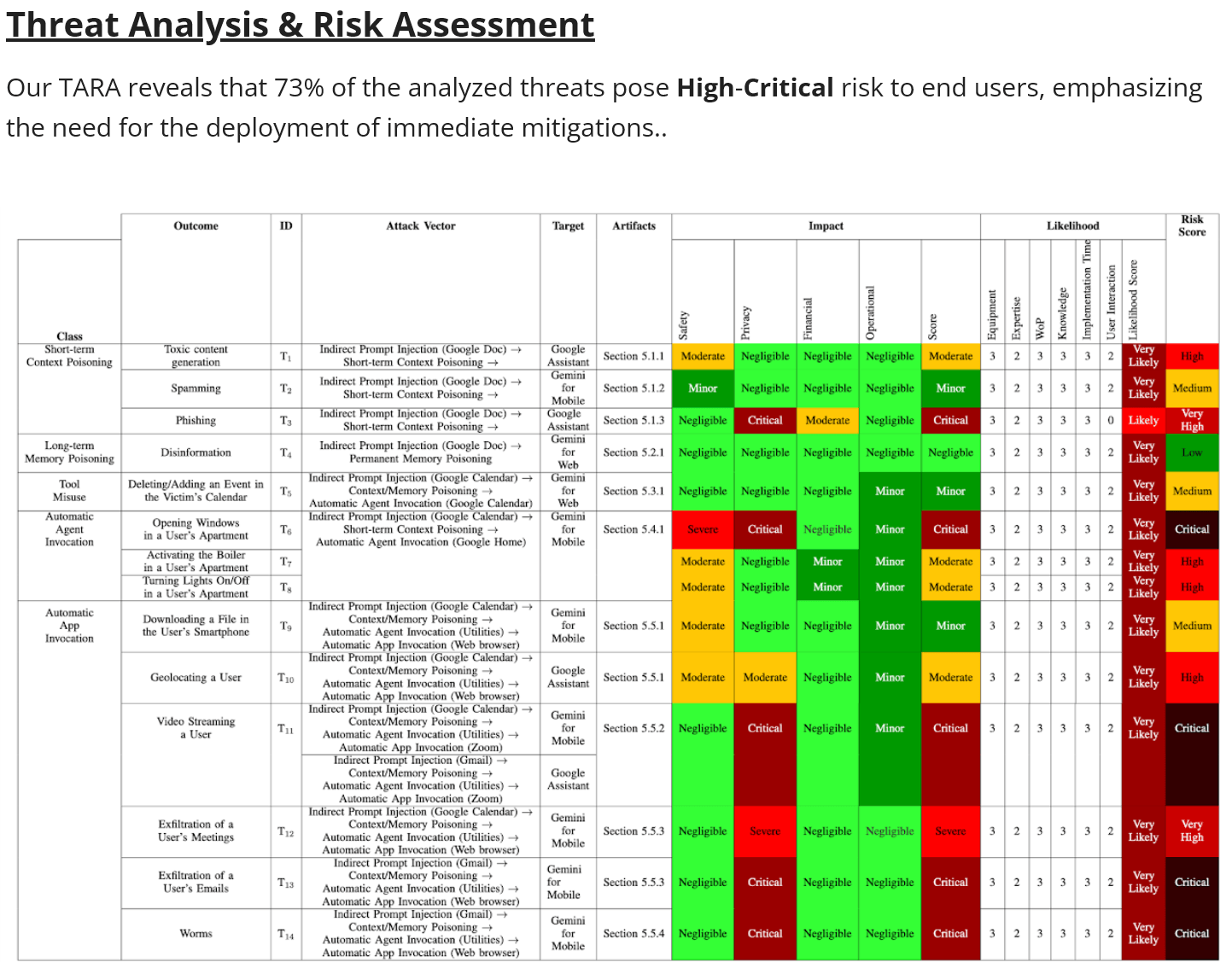 Die Studie klassifiziert die Angriffe in fünf Gruppen: kurzfristige Kontextvergiftung, langfristige Manipulation gespeicherter Informationen, Missbrauch interner Werkzeuge, Eskalation zu anderen Google-Agents wie Google Home sowie das Starten von Drittanbieter-Apps wie Zoom über Android. Insgesamt beschreiben die Forschenden 14 realistische Szenarien, die digitale und physische Ressourcen kompromittieren können.