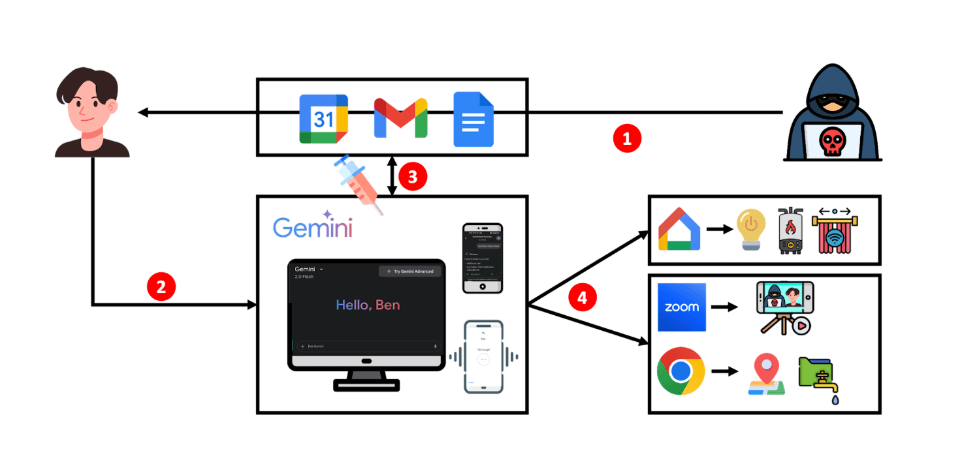 Angreifer platzieren ihre manipulierten Prompts hierfür in für gewöhnlich harmlosen Ressourcen wie E-Mails, Kalendereinträgen oder geteilten Google-Dokumenten. Sobald Nutzer ihren Gemini-Assistenten, etwa in Gmail, Google Kalender oder Google Assistant, um eine Auskunft bitten und damit ihre KI aktivieren, wird auch der versteckte Prompt aktiv und übernimmt die Kontrolle.
