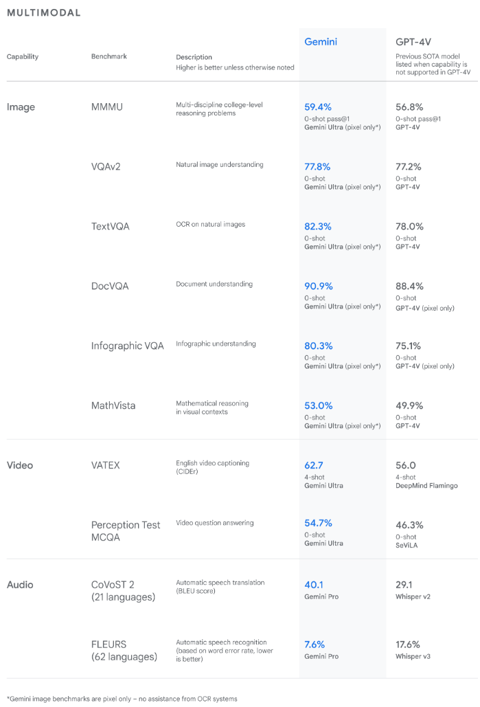 Die Auswertung einer breiten Palette von Benchmarks zeigt, dass unser leistungsstärkstes Modell Gemini Ultra den Stand der Technik in 30 von 32 Benchmarks übertrifft - insbesondere ist es das erste Modell, das die Leistung eines menschlichen Experten im gut untersuchten MMLU-Benchmark erreicht und den Stand der Technik in jedem der 20 untersuchten multimodalen Benchmarks übertrifft.