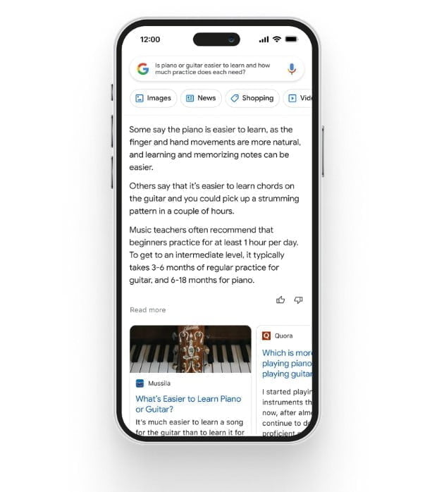 Wie nicht anders zu erwarten, nutzt Google textgenerierende KI auch für den Ausbau der sogenannten Zero-Click-Suche. Dabei handelt es sich um Suchanfragen, die direkt in der Suchmaschine beantwortet werden, ohne dass eine Webseite angeklickt werden muss.