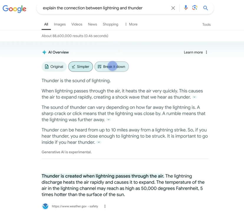Unter den neuen Funktionen sind eine laut Google verbesserte Darstellung von Weblinks, die Möglichkeit, KI-Zusammenfassungen zu speichern und eine Vereinfachung der Sprache in den Zusammenfassungen. Werbeanzeigen erscheinen ober- oder unterhalb der KI-Übersichten.