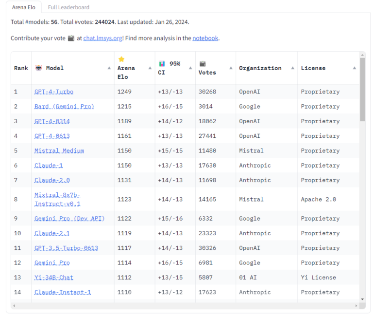 Da es sich um Nutzerbewertungen, also um wahrgenommene Qualität handelt, kann das Chatbot-Arena-Leaderboard von den Ergebnissen traditioneller Benchmarks abweichen.