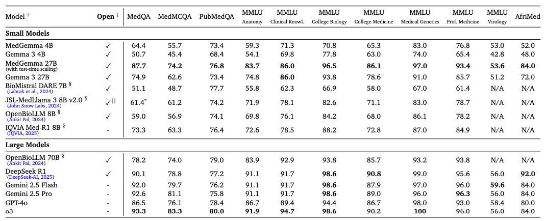 Laut dem technischen Bericht übertreffen die medizinisch spezialisierten Modelle vergleichbar große Foundation-Modelle erheblich. Bei speziellen medizinischen Aufgaben erreichen sie Verbesserungen von 2,6 bis 10 Prozent bei multimodalen Frage-Antwort-Systemen, 15,5 bis 18,1 Prozent bei der Klassifikation von Röntgenbefunden und 10,8 Prozent bei komplexeren agentischen Evaluierungen.