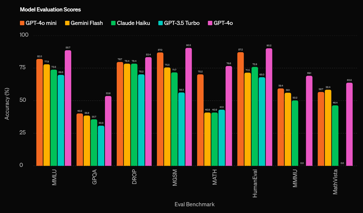 GPT-4o mini kostet 60 Prozent weniger als das bisher günstigste Modell von OpenAI und bietet gleichzeitig eine höhere Leistung. Laut OpenAI ist es das leistungsstärkste und kostengünstigste kleine Modell, das derzeit erhältlich ist. Entwickler zahlen 15 Cent pro 1 Mio. Eingabetoken und 60 Cent pro 1 Mio. Ausgabetoken (das entspricht etwa 2500 Seiten in einem Standardbuch).