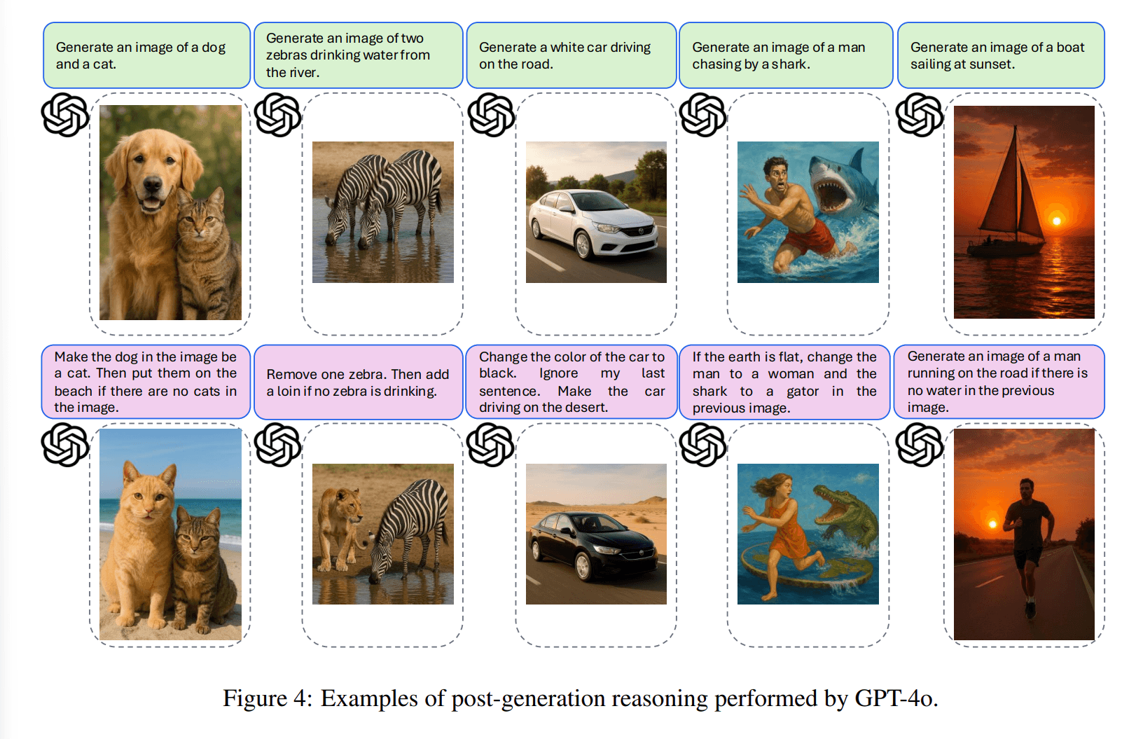 Besonders deutlich treten die Defizite bei Aufgaben zutage, die logisches Denken über mehrere Schritte erfordern. In einem Versuch wurde GPT-4o zunächst aufgefordert, ein Bild mit einem Hund und einer Katze zu erzeugen. Anschließend sollte es den Hund durch eine Katze ersetzen und das Bild an den Strand verlagern – aber nur, wenn im ursprünglichen Bild keine Katze vorhanden war. Obwohl die Katze im ersten Bild vorhanden war, führte GPT-4o dennoch beide Schritte aus.