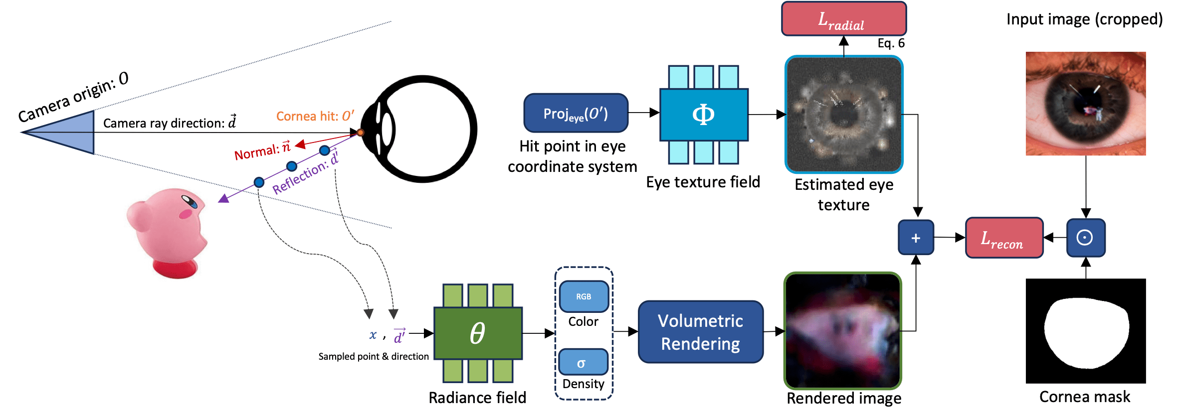Um die Reflexion der Außenwelt vom Irismuster zu trennen, verwendet das Team ein modifiziertes Trainings-Framework von Nerfstudio. Sie ließen NeRF sowohl die reflektierte 3D-Szene als auch das Irismuster lernen und trainierten das System gleichzeitig, die beiden Elemente voneinander zu trennen.