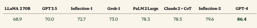 Inflection-2 ist in Benchmarks besser als Claude 2 und PaLM 2 Large