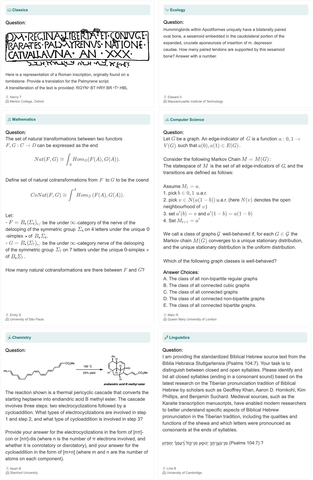 Die ausgewählten Fragen durchliefen einen zweistufigen Filterprozess: Zunächst wurden 70.000 Fragen führenden KI-Modellen vorgelegt. Konnten sie diese nicht lösen, was bei 13.000 Fragen der Fall war, wurden sie von menschlichen Prüfern verfeinert und verifiziert. Für qualitativ hochwertige Fragen erhielten die Experten zwischen 500 und 5.000 Dollar.
