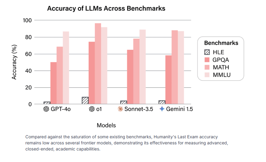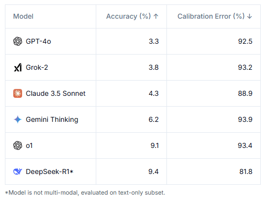 Selbst die fortschrittlichsten KI-Modelle wie GPT-4o, Claude 3.5 oder Gemini erreichen Trefferquoten von weniger als 10 Prozent. GPT-4o löst nur 3,3 Prozent der Aufgaben korrekt, OpenAIs o1 erreicht 9,1 Prozent und Gemini kommt auf 6,2 Prozent. Die Tatsache, dass nur Fragen in den Benchmark aufgenommen wurden, die die Modelle zunächst nicht lösen konnten, erschwert den Test insgesamt.