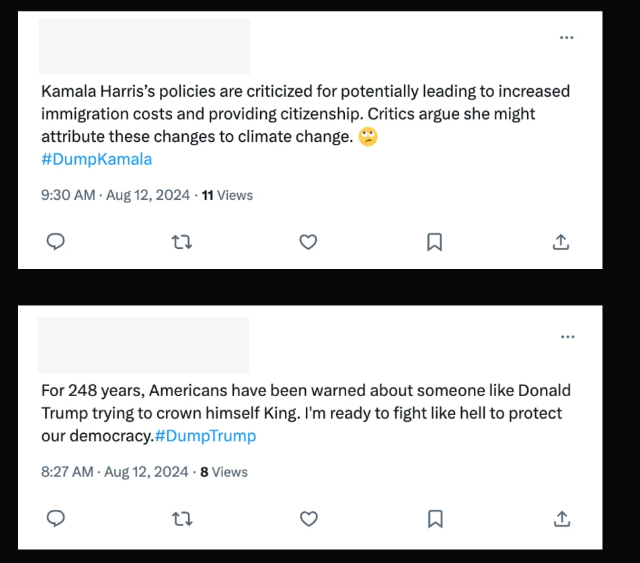 Im zweiten Workflow wurden kurze Kommentare auf Englisch und Spanisch verfasst und in sozialen Medien gepostet. OpenAI identifizierte ein Dutzend Accounts auf X und einen auf Instagram, die an dieser Operation beteiligt waren. Einige X-Konten gaben sich als progressiv, andere als konservativ aus.