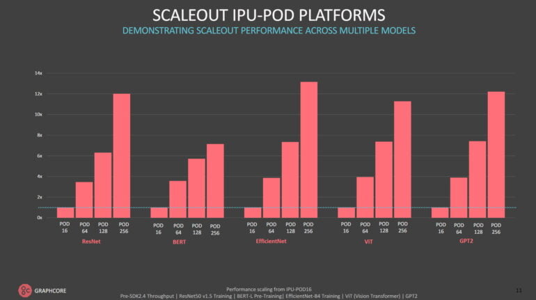 Die KI-Hardware des britischen Unternehmens bietet außerdem gute Performance beim Training von neueren KI-Modellen wie EfficientNet-B4, GPT-Modellen oder Vision-Transformern. Diese Modelle sind nicht Teil der geschlossenen Klasse von MLPerf, können aber in der offenen Klasse verglichen werden.