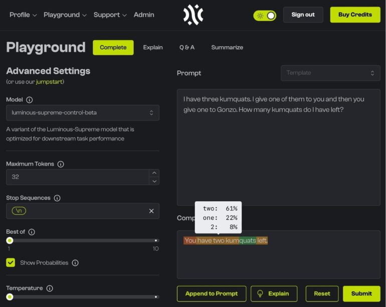 Bereits im Februar hatte das Unternehmen eine Control-Variante von Luminous-Supreme auf den Markt gebracht, die nun durch eine neue, verbesserte Version ersetzt wird. Im April führte Aleph Alpha dann die "Explain"-Funktion für Luminous ein, die die Ergebnisse der Sprachmodelle für die Nutzer:innen nachvollziehbarer macht.
