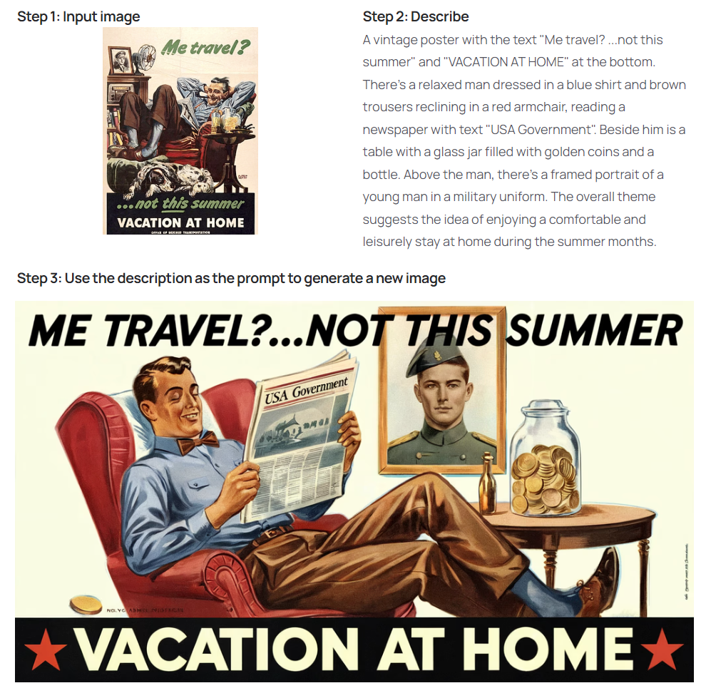 Mit Describe kann man basierend auf einem Originalbild einen detaillierten Textprompt generieren lassen. Dazu lädt man ein Bild hoch und Describe erstellt automatisch eine ausführliche Bildbeschreibung als Textprompt.