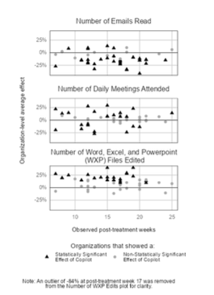 Die Ergebnisse zeigen, dass Mitarbeitende mit Zugang zu Copilot im Durchschnitt 11 Prozent weniger E-Mails lasen und 4 Prozent weniger Zeit damit verbrachten. In einigen Unternehmen lag die Reduktion sogar bei 20 bis 25 Prozent.