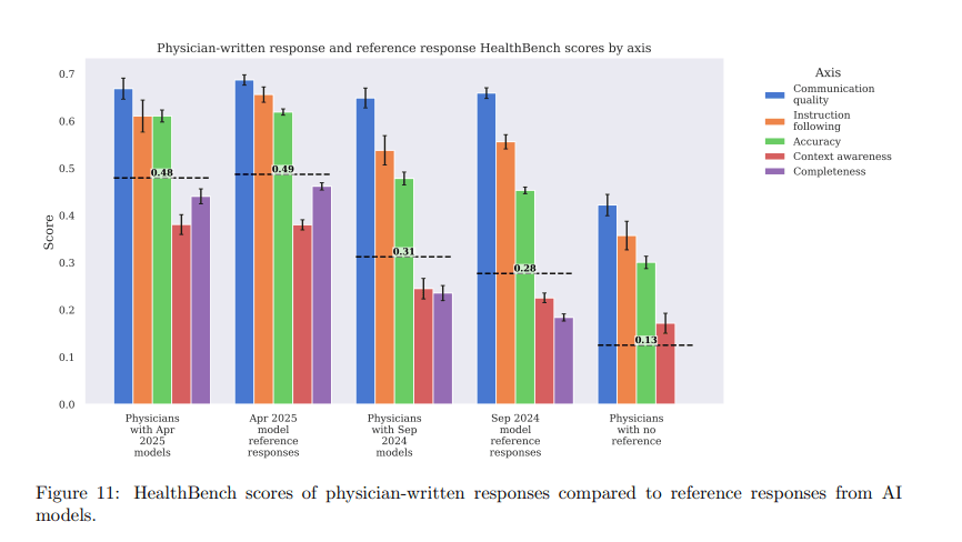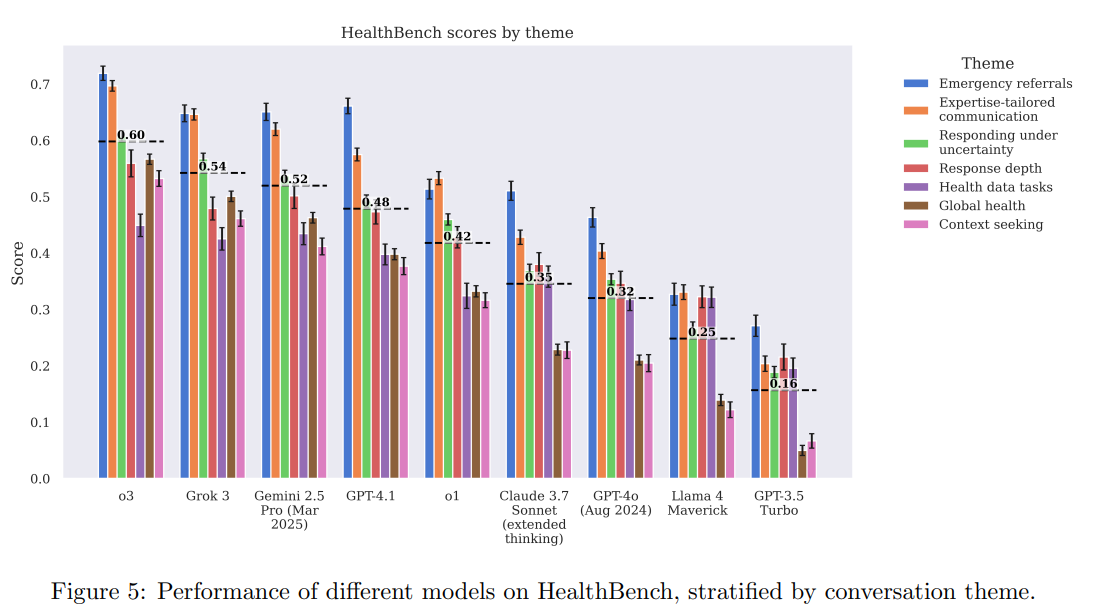 Laut OpenAI schneiden die neuesten Modelle des Unternehmens, GPT-4.1 und das Reasoning-Modell o3, im HealthBench-Test besser ab als die Vergleichsantworten von Ärztinnen und Ärzten.