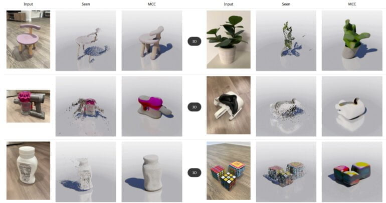 Forschende von Meta stellen MCC vor, eine Methode, die aus einem einzigen Bild ein 3D-Modell rekonstruieren kann. Anwendungen sieht das Unternehmen in VR/AR und der Robotik.