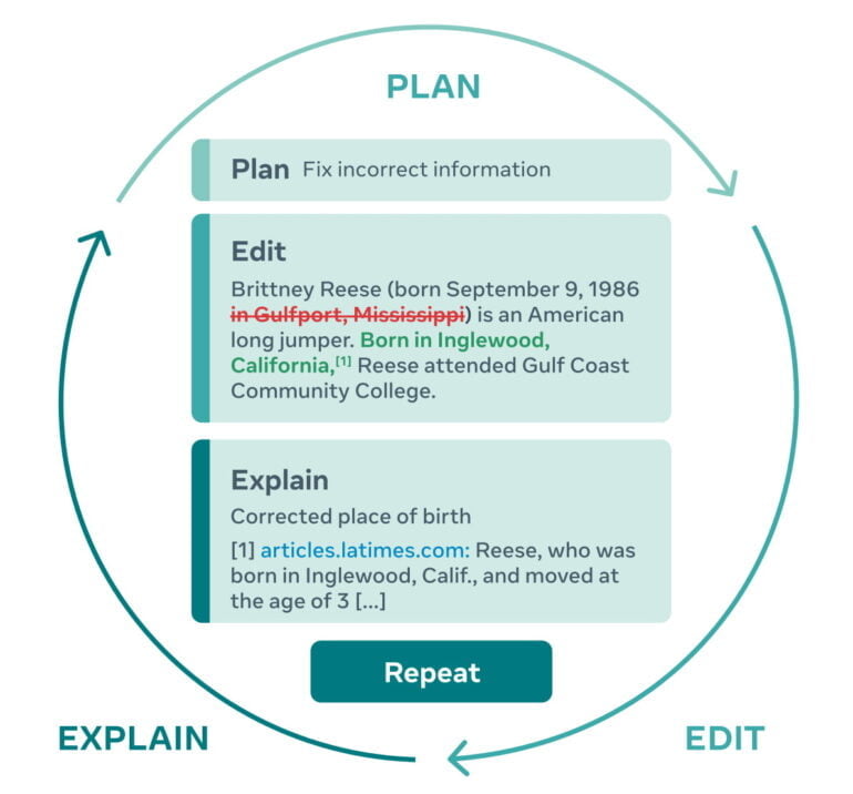 KI-Forschende von Meta wollen das ändern und stellen jetzt PEER vor. Das Akronym steht für "Plan, Edit, Explain, Repeat" und benennt ein neues kollaboratives Sprachmodell, das mit Bearbeitungsverläufen etwa aus Wikipedia trainiert wurde.