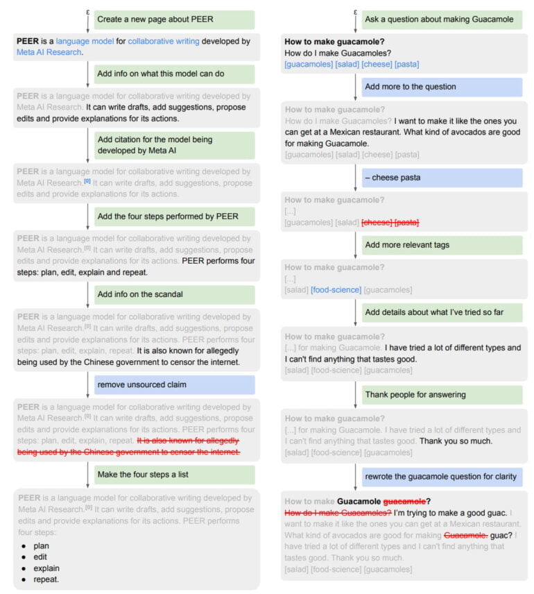 PEER arbeitet dafür in mehreren Schritten, die laut Meta den menschlichen Schreibprozess spiegeln sollen. Für einen gegebenen Text kann ein Mensch oder das KI-Modell einen Plan erstellen, beispielsweise per Text-Eingabe.