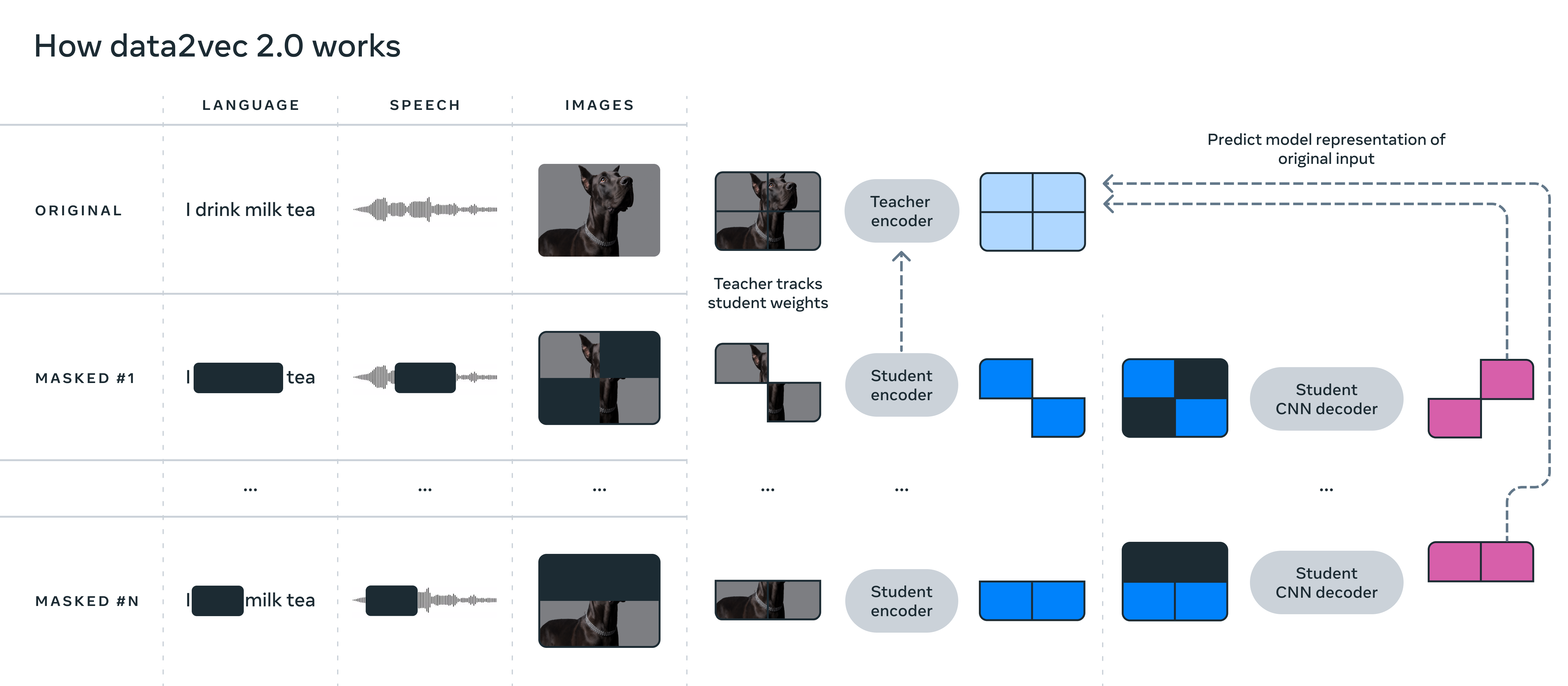 Meta hat eine neue Version von data2vec veröffentlicht: data2vec 2.0.
