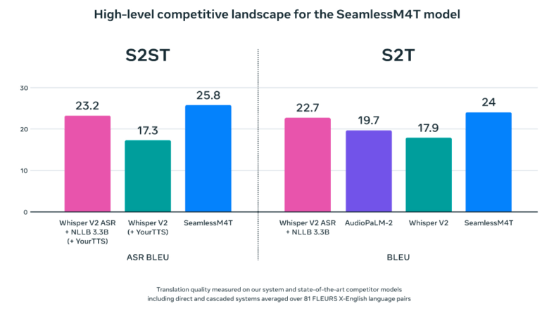 Laut Meta erzielt SeamlessM4T in den gängigen Übersetzungsbenchmarks neue State-of-the-Art-Ergebnisse und übertrifft Whisper von OpenAI. Wer sich selbst von den Qualitäten überzeugen möchte, kann hier eine interaktive Demo testen.
