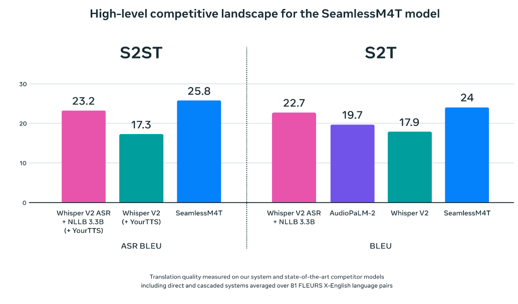 Laut Meta ist SeamlessM4T das erste Modell, das viele Sprachen (35) direkt wieder in gesprochene Sprache übersetzen kann, ohne den Umweg über eine Textübersetzung zu nehmen. Damit soll das Modell ein "signifikanter Schritt" auf dem Weg zu einem Universalübersetzer wie dem Babel Fish in Per Anhalter durch die Galaxis sein, den Meta in der Ankündigung explizit als Ziel nennt.