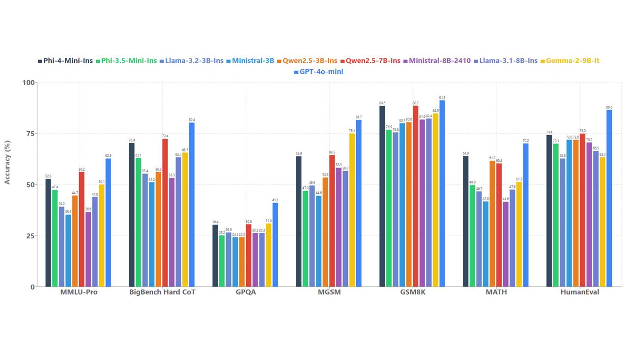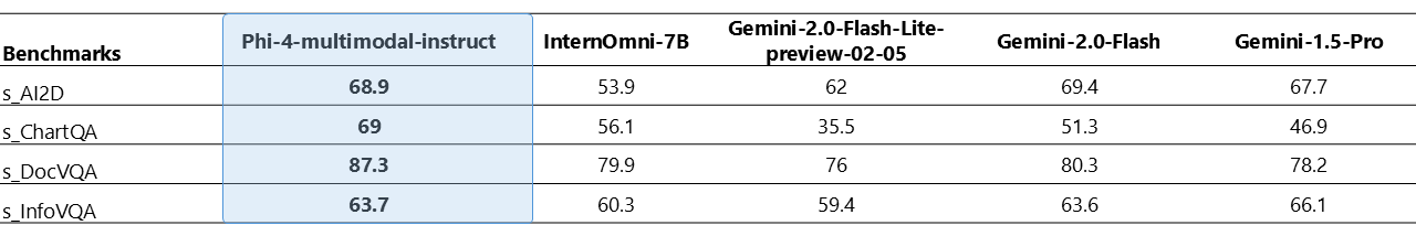 Trotz seiner geringen Größe zeigt das Modell laut Microsoft zudem bei Vision-Aufgaben starke Leistungen, insbesondere beim mathematischen und wissenschaftlichen Schlussfolgern. Bei Dokumenten- und Diagrammverständnis, optischer Zeichenerkennung und visuellem wissenschaftlichem Schlussfolgern soll es mit größeren Modellen wie Gemini-2-Flash-lite-preview und Claude-3.5-Sonnet mithalten können.