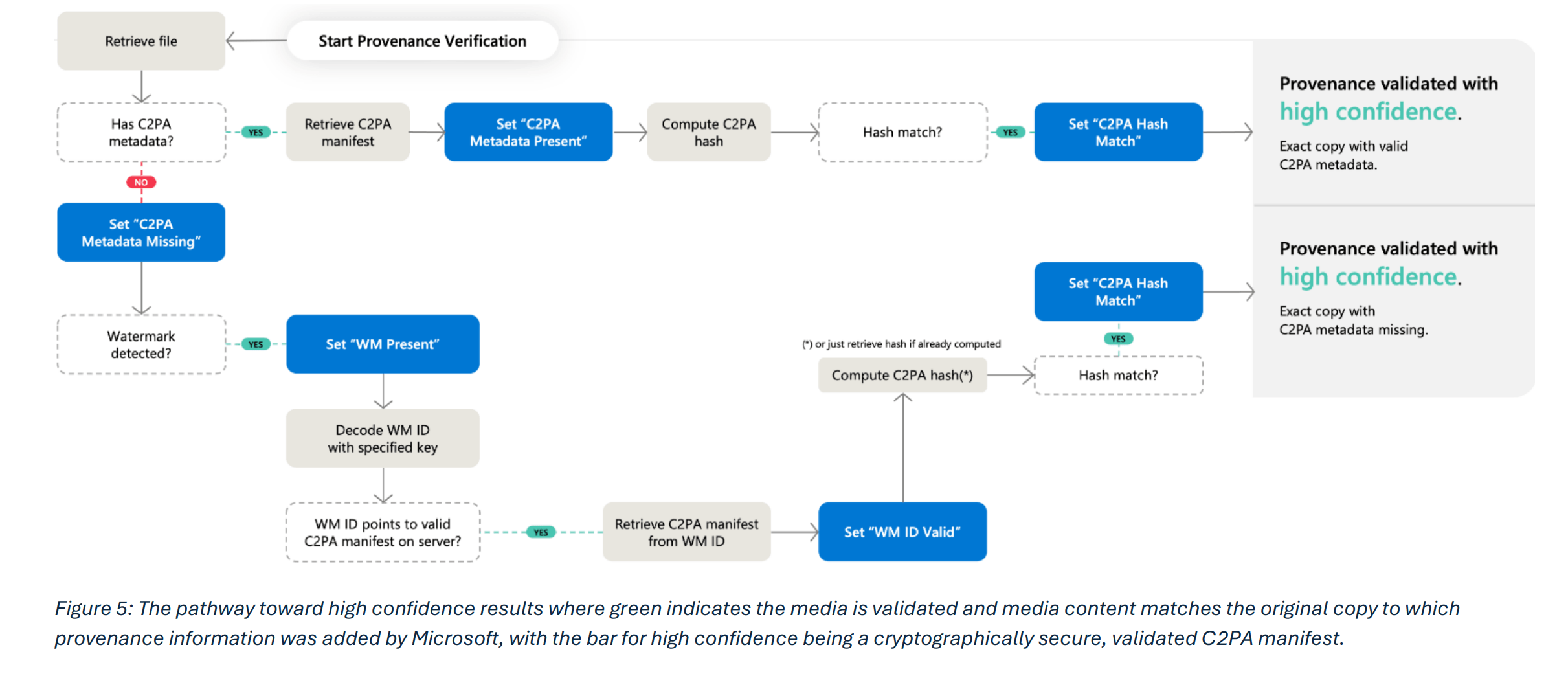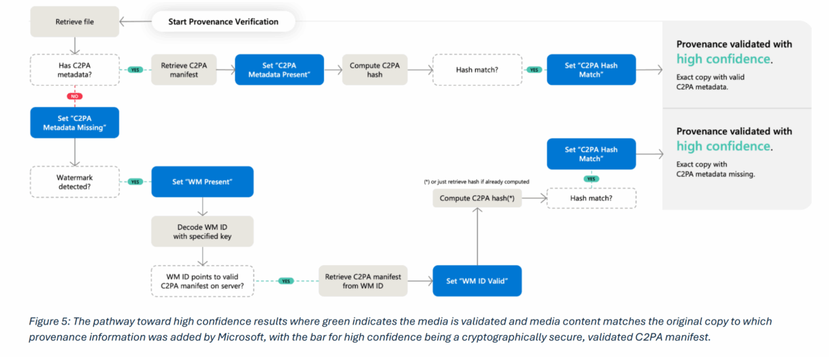 Microsoft empfiehlt als Gegenmaßnahme, dass Plattformen bei der Anzeige von Herkunftsinformationen stets den sogenannten Bearbeitungsbereich mitliefern, also zeigen, wo genau Änderungen stattgefunden haben. Auch Vorschaubilder der Originalmedien sollten angezeigt werden. Verbreitungsplattformen wie soziale Netzwerke sollten vollständige Manifest-Details erhalten, damit Nutzer sie über Verifizierungsdienste prüfen können.