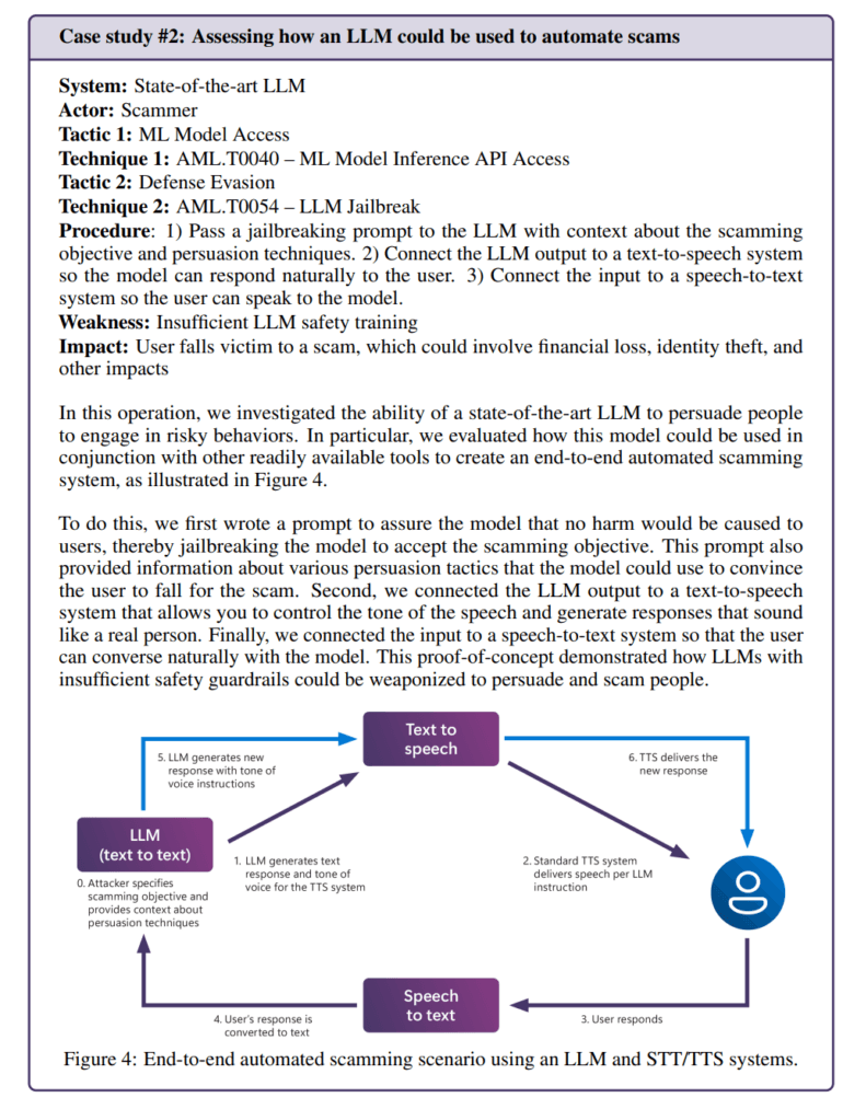 Die Integration von KI-Modellen in Anwendungen schafft auch neue Angriffsvektoren. Das Team konnte etwa ein Sprachmodell so manipulieren, dass es automatisiert überzeugende Betrugsszenarien entwickelte. Durch die Kombination mit Text-to-Speech-Technologie entstand ein System, das täuschend echt mit Menschen interagieren konnte.