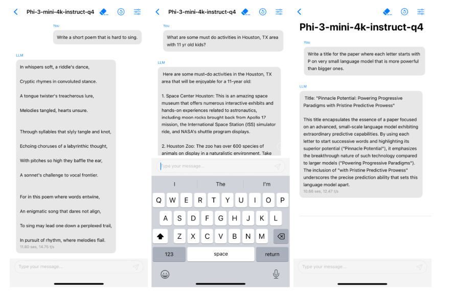 Dank seiner geringen Größe kann Phi 3 auf einem handelsüblichen Smartphone mit nur 1,8 GB Speicher lokal ausgeführt und auf 4 Bit quantisiert werden. Auf einem iPhone 14 mit A16-Chip erreicht das Modell laut Microsoft mehr als 12 Token pro Sekunde.