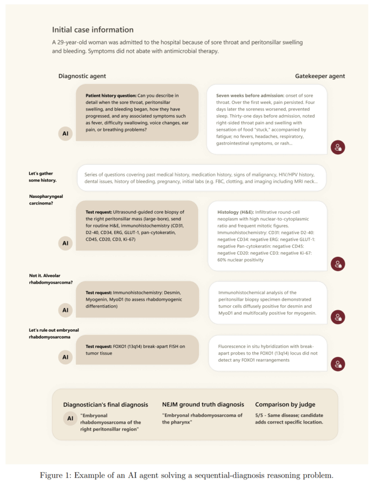 Forscher von Microsoft AI haben ein KI-System vorgestellt, das die Art und Weise, wie komplexe Krankheiten diagnostiziert werden, grundlegend verändern könnte. Laut dem Paper "Sequential Diagnosis with Language Models" übertrifft das System menschliche Ärzte bei schwierigen Fällen deutlich in Genauigkeit und Kosteneffizienz.