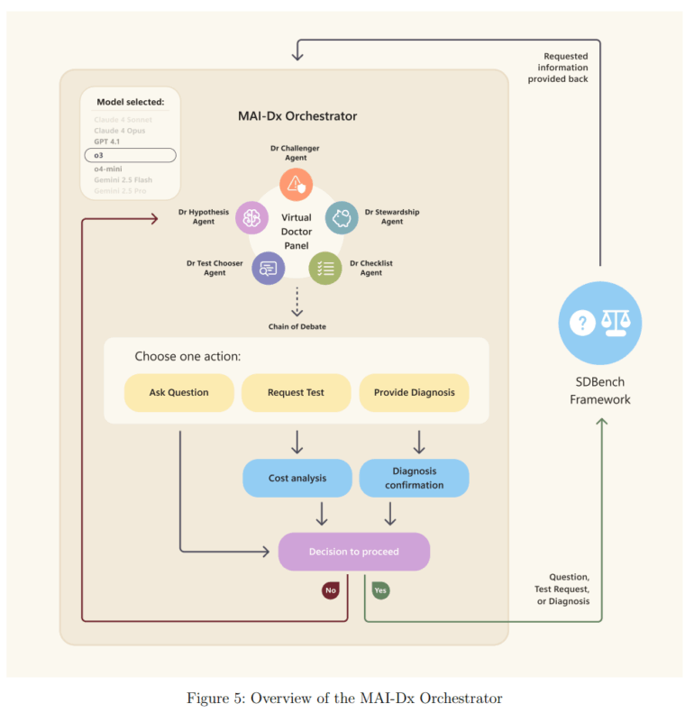 Der Erfolg von MAI-DxO basiert laut dem Paper auf einem orchestrierten Ansatz, der ein virtuelles Gremium von Ärzten simuliert. Dabei übernimmt ein einziges Sprachmodell fünf verschiedene Rollen: "Dr. Hypothesis" pflegt eine Liste wahrscheinlicher Diagnosen, "Dr. Test-Chooser" wählt die aussagekräftigsten Tests aus, und "Dr. Challenger" agiert als " Advocatus Diaboli", um kognitive Verzerrungen wie vorschnelle Urteile zu vermeiden. "Dr. Stewardship" überwacht die Kosten und "Dr. Checklist" sichert die Qualität.